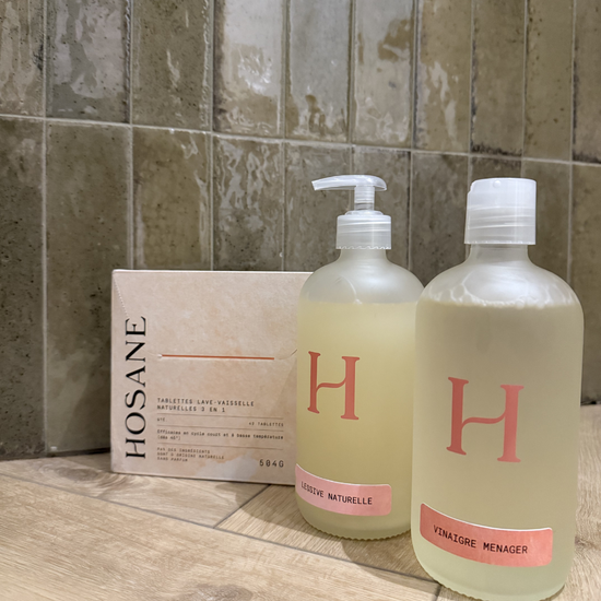 - Une lessive douceur en verre de 500 ml avec pompe : élégante et idéale pour toute la famille